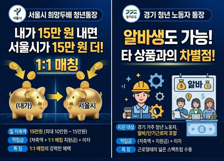 - 지자체 간 중복 불가: 서울 희망두배, 경기 청년노동자, 인천 드림For 등 지자체 통장끼리는 원칙적으로 중복 가입이 불가능합니다.